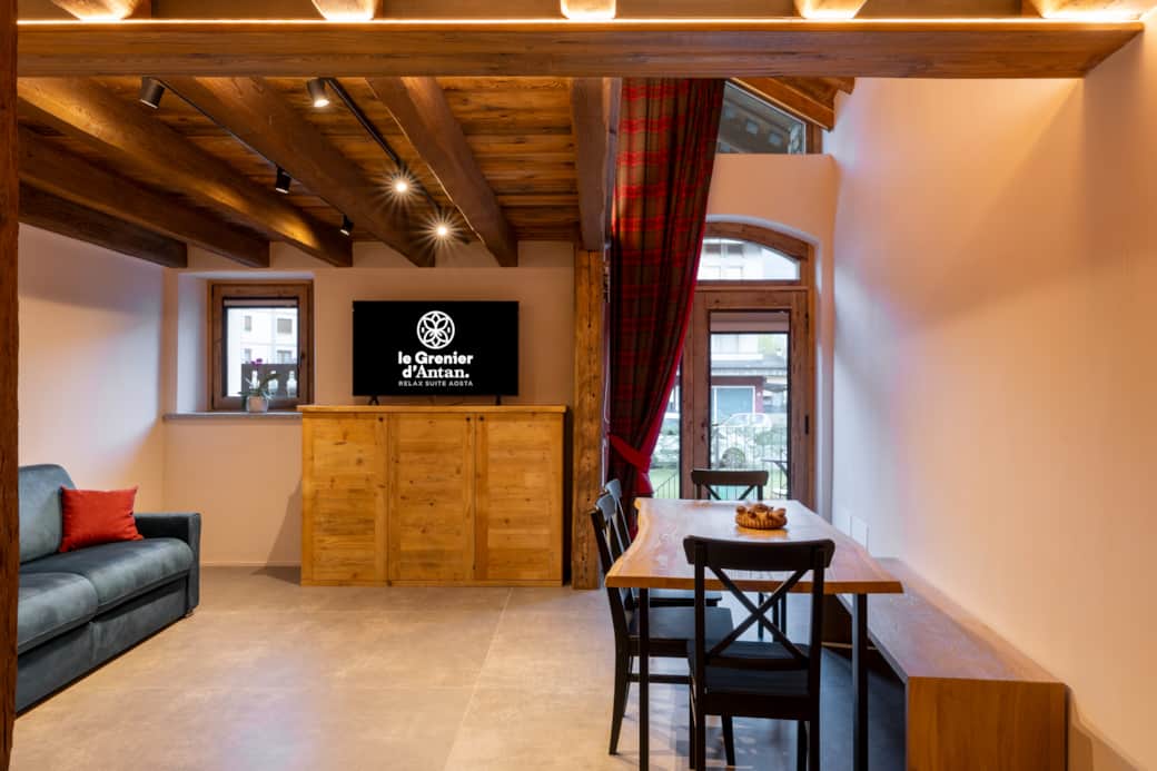 Siamo la JAV S.A.S. di Guerrisi Antonio e C., una società nata con l’obiettivo di ridare vita e valore a edifici storici del centro di Aosta, trasformandoli in luoghi unici dedicati all’ospitalità. Siamo i proprietari della struttura Le Grenier d’Antan Relax Suite, acquistata, progettata e ristrutturata con cura e passione, preservandone l’identità originaria. L’intervento è stato realizzato nel pieno rispetto del contesto storico, seguendo le linee guida della Sovrintendenza per quanto riguarda gli esterni, e valorizzando al massimo gli spazi interni con materiali locali e soluzioni architettoniche su misura.